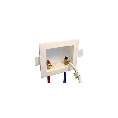 EASTMAN Washing Machine Outlet Box, 1/2 x 3/4 in Connection, Drain Location: Center, Valve Type: Quarter Turn, Brass, White, 10-1/4 in L, 3-1/2 in W, 9.1 in H, Includes: Mounting Bracket