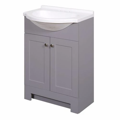 Zenna Home 2-Door Euro Shaker Vanity with Top, Sink Material: Cultured Marble, Sink Color: White, Wood, Cool Gray, 24 in W, 18 in D, 35 in H